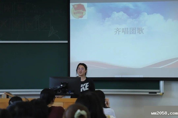 活动第一项,全体同学起立!齐唱中国共产主义青年团团歌《光荣啊,中国共青团》!