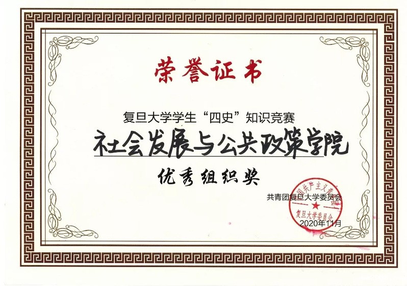 经过激烈角逐,社会发展与公共政策学院代表队「社荟队」赛出风格,赛出水平,成功晋级决赛,获得季军荣誉!社会发展与公共政策学院获得知识竞赛“优秀组织奖”。